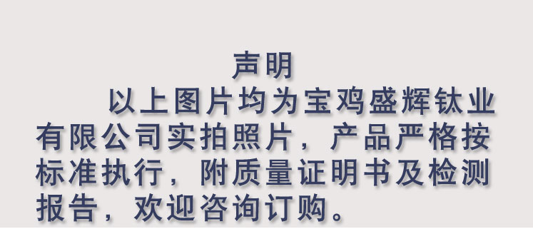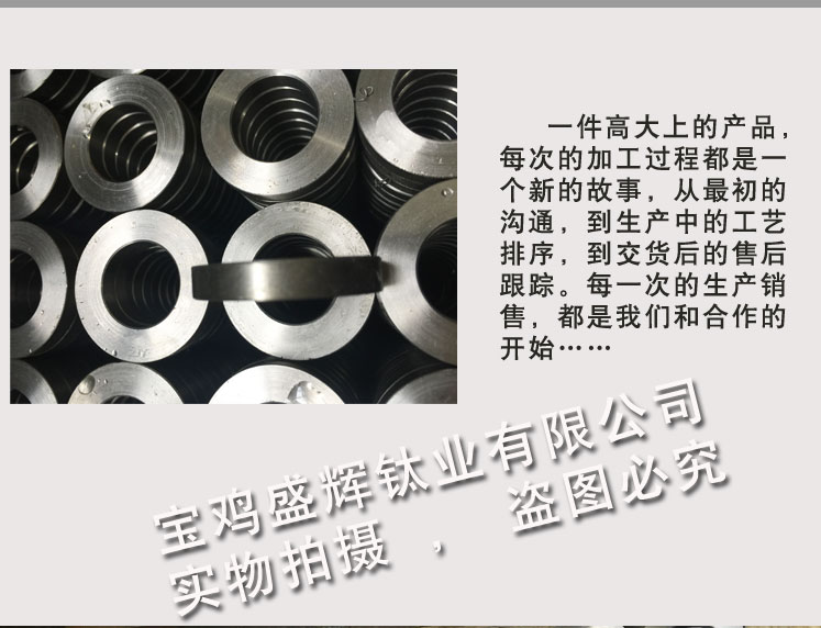 宝鸡盛辉钛业有限公司是一家主要从事钛及钛合金棒,钛环,钛法兰及钛合金板材的高新技术企业,公司提供钛环,钛合金棒批发,钛环的生产工艺服务,以人为本,质量取胜为宗旨:18791863990,18740375975