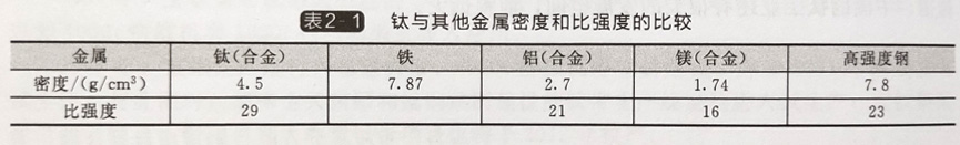 表2-1钛与其他金属密度和比强度的比较
