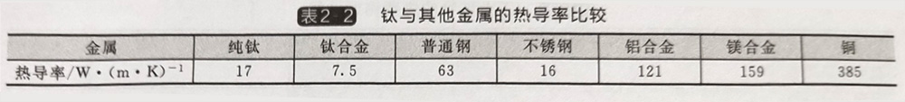 表2-2钛与其他金属的热导率比较