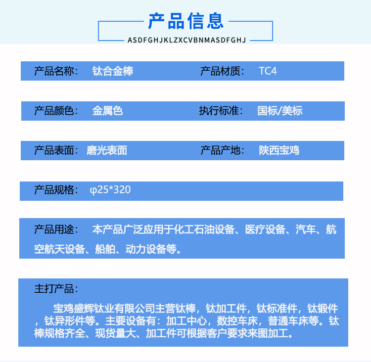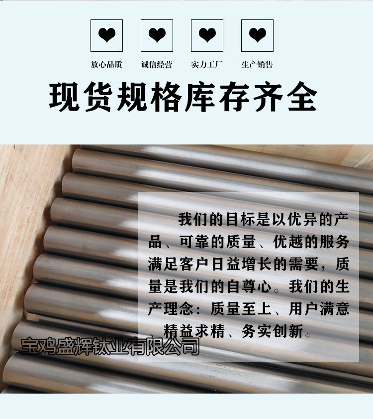 宝鸡盛辉钛业有限公司是一家主要从事钛及钛合金棒,钛环,钛法兰及钛合金板材的高新技术企业,公司提供钛环,钛合金棒批发,钛环的生产工艺服务,以人为本,质量取胜为宗旨:18791863990,18740375975