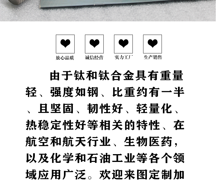 宝鸡盛辉钛业有限公司是一家主要从事钛及钛合金棒,钛环,钛法兰及钛合金板材的高新技术企业,公司提供钛环,钛合金棒批发,钛环的生产工艺服务,以人为本,质量取胜为宗旨:18791863990,18740375975