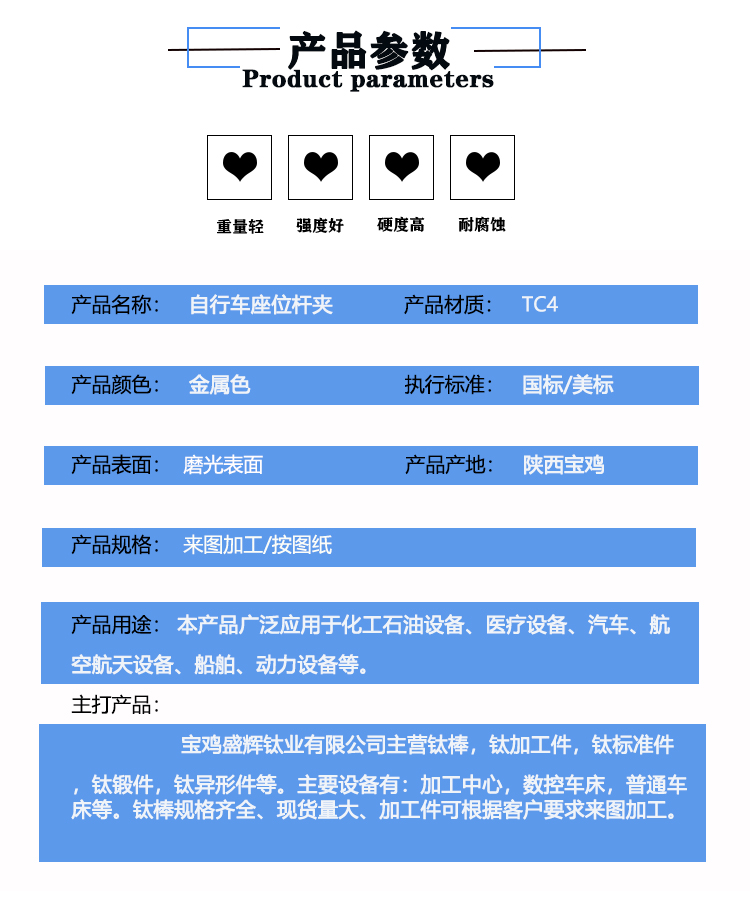 宝鸡盛辉钛业有限公司是一家主要从事钛及钛合金棒,钛环,钛法兰及钛合金板材的高新技术企业,公司提供钛环,钛合金棒批发,钛环的生产工艺服务,以人为本,质量取胜为宗旨:18791863990,18740375975
