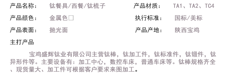 宝鸡盛辉钛业有限公司主营钛棒,钛加工件,钛标准件,钛锻件,钛异