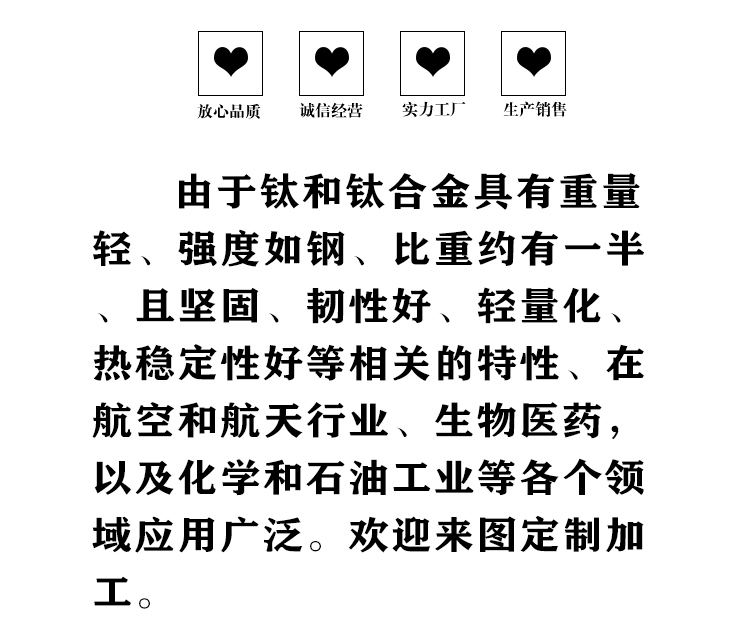 宝鸡盛辉钛业有限公司是一家主要从事钛及钛合金棒,钛环,钛法兰及钛合金板材的高新技术企业,公司提供钛环,钛合金棒批发,钛环的生产工艺服务,以人为本,质量取胜为宗旨:18791863990,18740375975