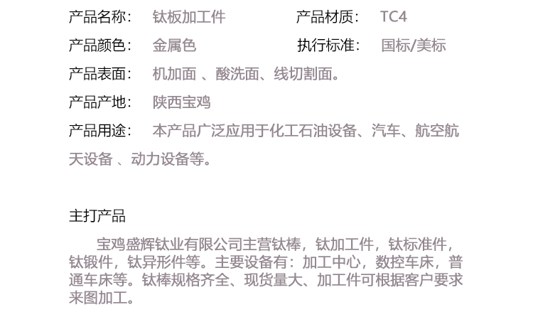 宝鸡盛辉钛业有限公司主营钛棒,钛加工件,钛标准件,钛锻件,钛异