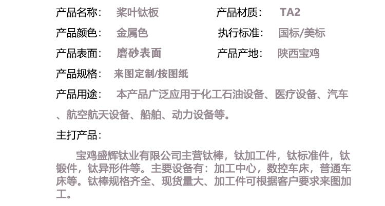 宝鸡盛辉钛业有限公司主营钛棒,钛加工件,钛标准件,钛锻件,钛异形件等。 主要设备有:加工中心,数控车床,普通车床等。可根据客户要求来图加工。