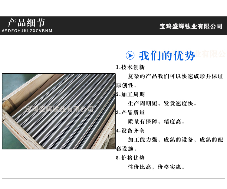 宝鸡盛辉钛业有限公司是一家主要从事钛及钛合金棒,钛环,钛法兰及钛合金板材的高新技术企业,公司提供钛环,钛合金棒批发,钛环的生产工艺服务,以人为本,质量取胜为宗旨:18791863990,18740375975