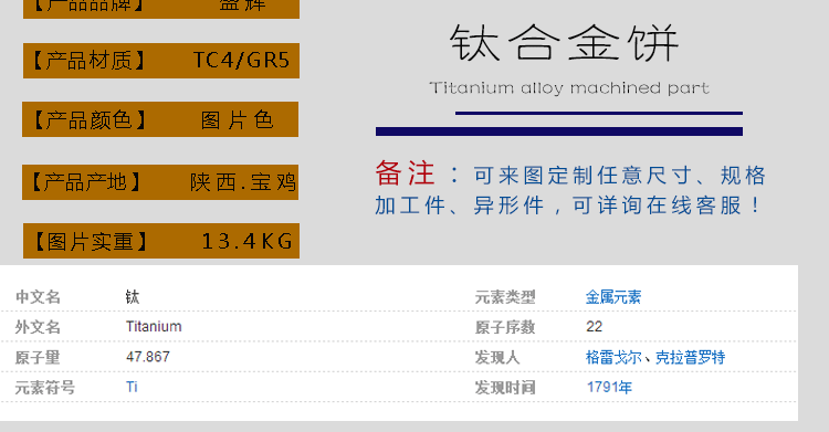 为了帮助客户辨别钛商品的品质优劣,确保钛产品的来源渠道正规,本公司可提供第三方检测机构证明书。客户可以清楚的知道商品的的名称、材质、批号、成分等详细信息。确保钛产品的优良品质。