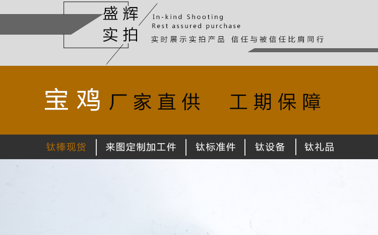 从细节出发,站在专业的角度,始终如一坚守品质的最终使用价值,产品和服务同时送达是盛辉钛业对客户的承诺。宝鸡盛辉,将以不变的挚诚,用心聆听,贴心关怀,以至全至尊的服务,与新老客户携手共赢!
