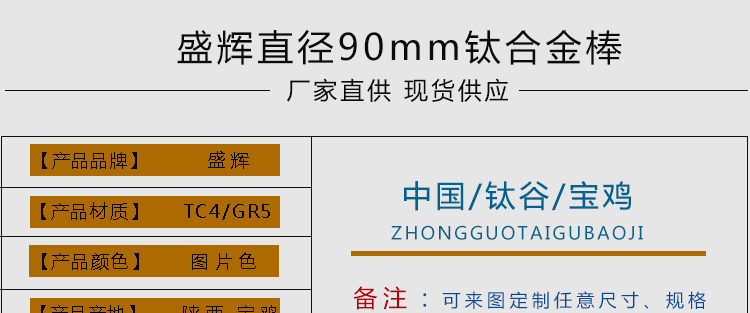 宝鸡盛辉钛业有限公司主营钛棒,钛加工件,钛标准件,钛锻件,钛异