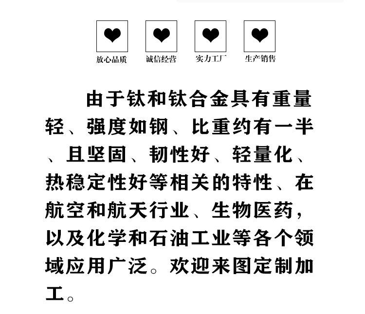 宝鸡盛辉钛业有限公司是一家主要从事钛及钛合金棒,钛环,钛法兰及钛合金板材的高新技术企业,公司提供钛环,钛合金棒批发,钛环的生产工艺服务,以人为本,质量取胜为宗旨:18791863990,18740375975