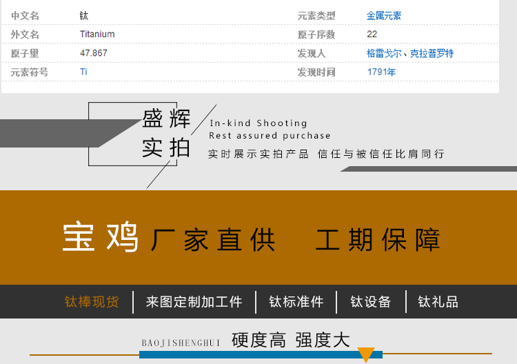 对每一位客户——我们都详细地了解和分析不同需要,在提供方案的同时从产品兼容性、可扩展性及技术支持等方面进行充分的考虑,以针对客户的需要提供优秀的方案。“用户至上”是我们一贯的宗旨。严格而行之有效的售前、售后服务,是宝鸡盛辉盛辉钛业信心的保证。 售前售后电话:18740375975